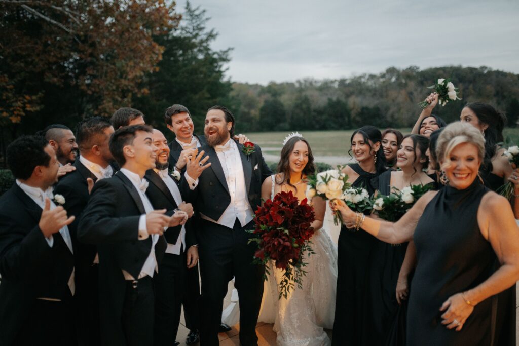 The all-black wedding party wardrobe elevated the look while also giving the photos a high-end, magazine-ready feel. These group portraits became highlights of the day: bold, confident, stylish, and full of personality. They reflect the kind of moments couples look back on with their closest people — the laughter, the joy, the celebration.